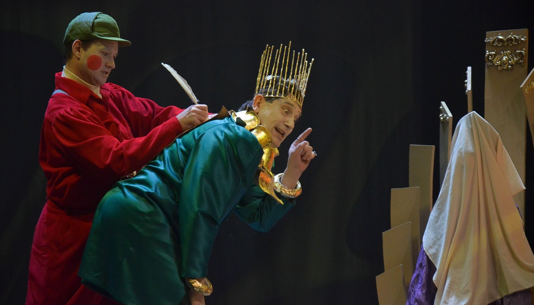Спектакль говорит об этих серьезных вещах самым понятным языком – с помощью юмора. Здесь переплелись ирония и гротеск, клоунада и буффонада. Для музыкального оформления сказки создан актерский мини-оркестр, в котором будут использованы такие музыкальные инструменты, как пила, табурет, ложки, горох.